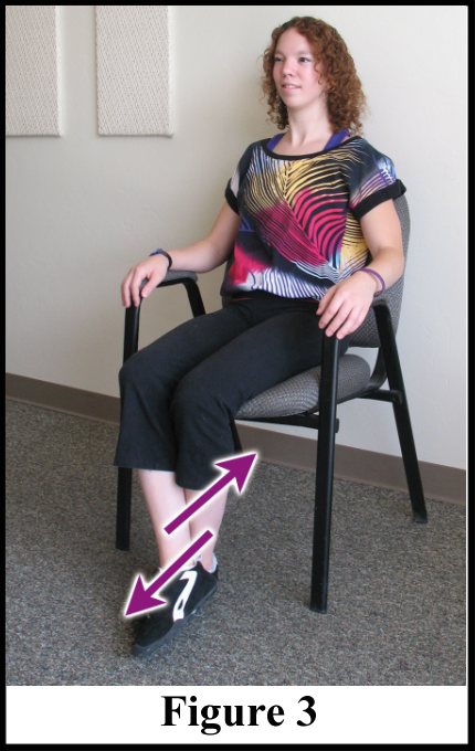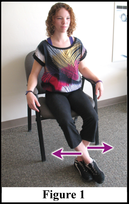 To strengthen the muscles that allow your hips to rotate, sit in a chair, cross your ankles, and keep your knees about six inches apart. Try to pull your feet apart but without actually moving them. Then switch feet and perform the isometric with your other leg in front (Figure 1). You will feel this exercise on the outer side of your hips.