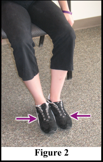 Now place your feet side by side with six inches still between your knees. Push the inner sides of your feet together (Figure 2). This muscle contraction will strengthen your inner thighs.